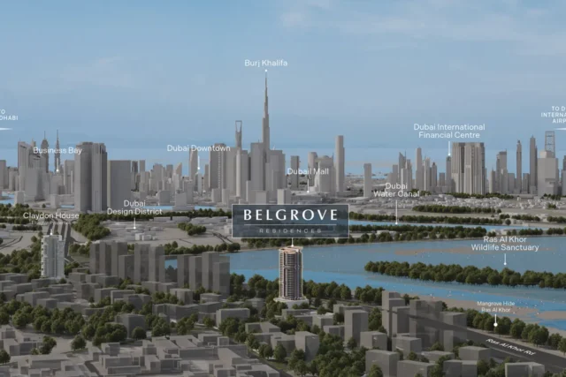 Belgrove Residences at MBR City is a residential development by Ellington Properties with refined harmony of nature lined with 1, 2 & 3 bedroom apartments in Dubai. Discover a new benchmark in luxury living with architectural marvel inspired by the nature’s elegance, drawing inspiration from the flamingos. The high-rise 26-storey residential building comes with ground floor, four podium levels and rooftop, with angular and bevelled design serving as architectural landmark offering premium views of the Ras Al Khor Wildlife. The design emphasizes its aesthetic appeal and ensures that each residence within the façade offers breathtaking views of the nature and urban landscapes.