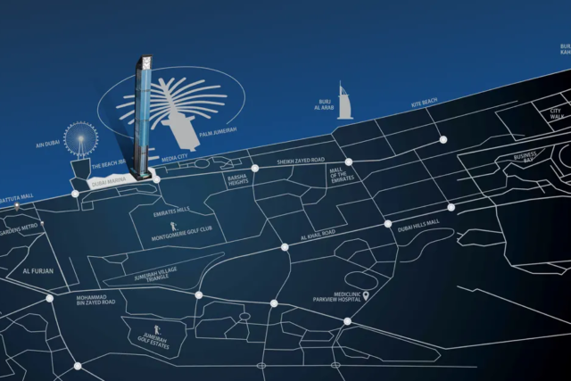 This architectural marvel comprising 106 floors will not only be the tallest branded residential tower boast the distinction of being the tallest residential clock tower globally. The angular structure at the tower’s summit, adorned with a classic font and varying-sized numbers, promises to become an iconic feature on the Dubai skyline, offering breathtaking views, possibly overlooking the Palm Jumeirah.