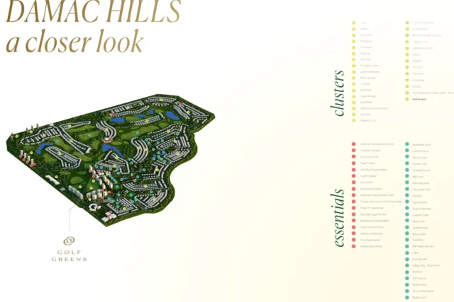 Golf Greens at Damac HillsDubai is an exceptional residential Twin Tower by Damac Properties with luxurious and elegant 1 & 2 bedroom apartments and 2 & 3 bedroom townhouses. This high-rise 20-storey development of towers A and B comes with astonishing infrastructure ornamented with some greenery in it. This lavish creation is the hub of many required and leisure-based amenities and services along with the stunning vistas of the lush green and Trump International Golf Course.