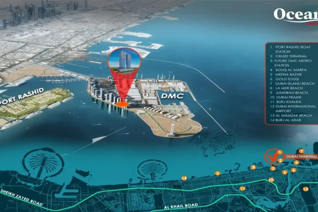 Strategically located by Sheikh Zayed Road, Oceanz 2 links with key places across Dubai. Commute to the most popular destinations like Downtown Dubai, Business Bay, and Dubai International Airport takes hardly more than 20 minutes. The project stands nearby to the cultural icons, such as the Dubai Museum, which is easily reachable within 15 minutes. The Burj Khalifa can be accessed within 20 minutes. The seaside community in Dubai Maritime City offers many urban facilities within a short distance, be it retail spaces, dining options, schools, business hubs, or cultural venues.