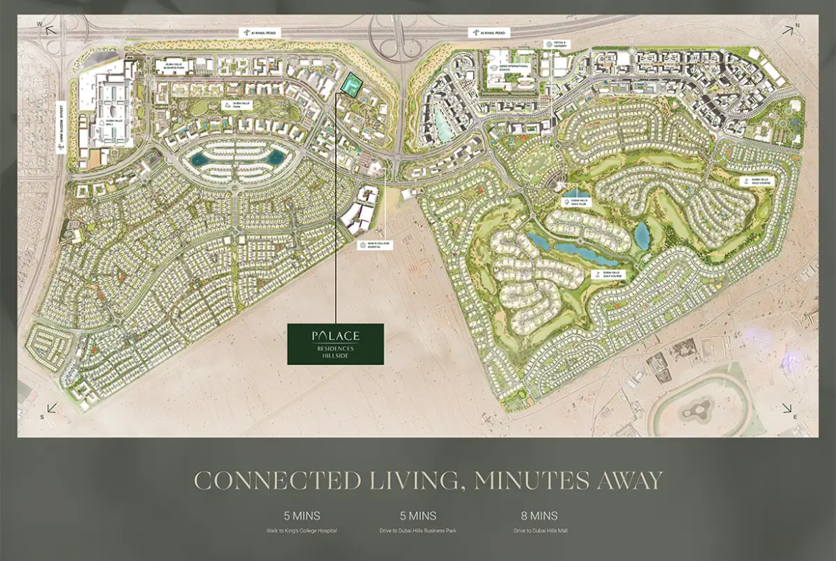- A spectacular Dubai Hills Park ideal for family activities, picnics, melodious gatherings, kids’ play areas, and open playgrounds