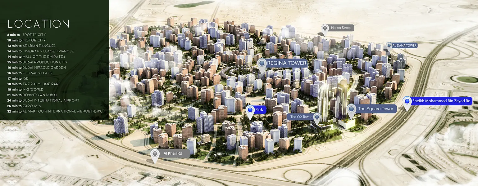 Introducing, Regina Tower at Jumeirah Village Circle (JVC) in Dubai, a residential development by Tiger Properties that features furnished Studio & 1 bedroom luxury apartments. This tower is primarily a mixed-used building that comprises of residences, offices and retail shops. As such, you will have everything that you wish for within this tower.