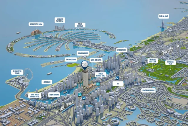 - Situated at the heart of Dubai Marina, offers seamless connectivity to key destinations including Dubai Marina Mall, and leisure promenade.