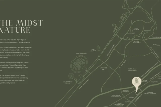 The Acres by Meraas is the latest residential façade in the ever-evolving tapestry of Dubailand with a distinctive selection of 3, 4 & 5-bedroom standalone villas. This is an exceptional community that redefines the art of living with standalone villas nestled amidst impeccable surroundings, where nature seamlessly intertwines with modern luxury. The facades seamlessly blend lavishness with contemporary architectural elements, promising residents an unparalleled living experience within the thriving urban environment of Dubai.
