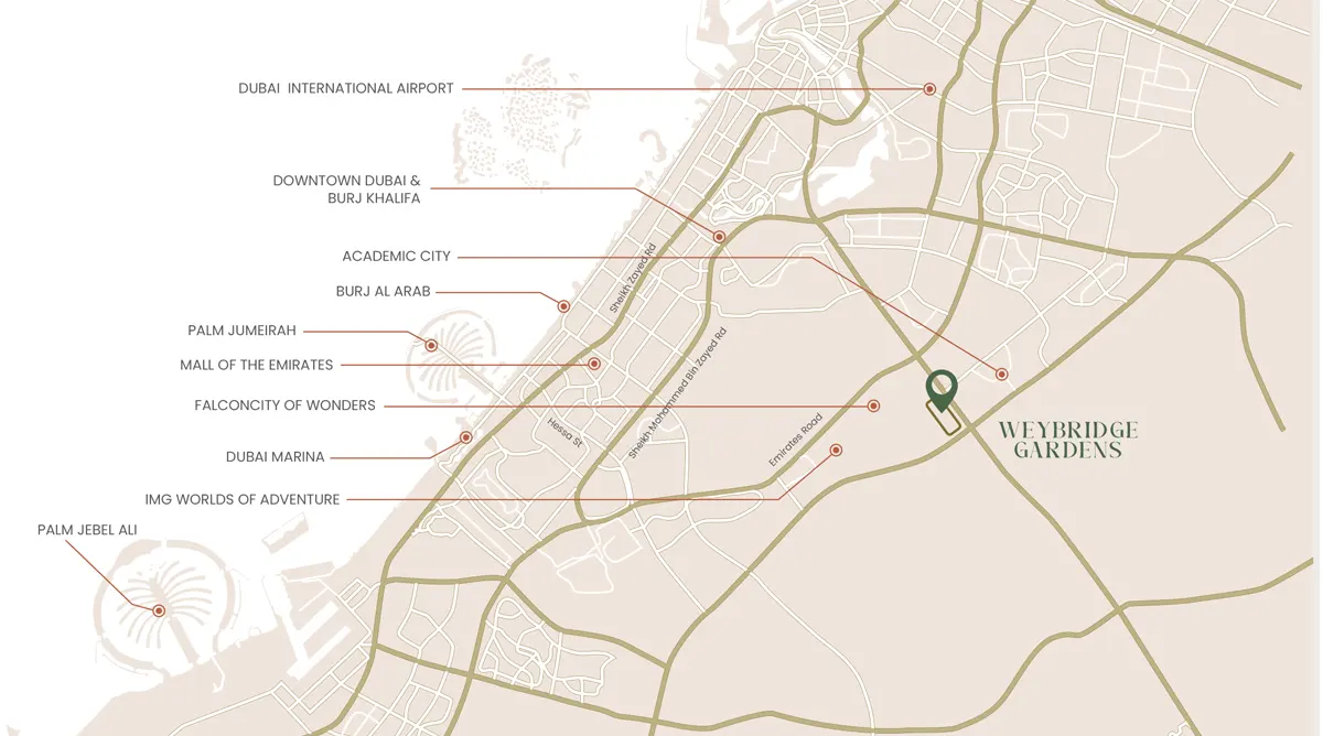 Discover a world of contemporary living at Weybridge Gardens, a prestigious residential complex by Leos Developments with studios and 1 bedroom apartments in the heart of Dubailand. With its timeless architecture and vibrant ambiance, it is set to redefine modern urban living. Nestled in the thriving hub of Dubailand, this exquisite development offers an unparalleled lifestyle experience.